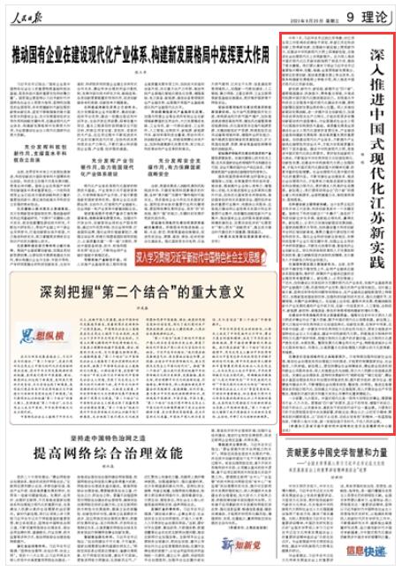 人民日?qǐng)?bào)|深入推進(jìn)中國(guó)式現(xiàn)代化江蘇新實(shí)踐