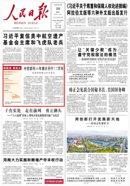 人民日?qǐng)?bào)|中歐班列10年累計(jì)開行7.7萬(wàn)列 運(yùn)送貨值超3400億美元