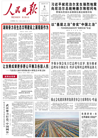 人民日?qǐng)?bào)頭版頭條聚焦丨湖南奮力在生態(tài)文明建設(shè)上展現(xiàn)新作為