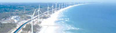 為滿(mǎn)足海南自貿(mào)港高質(zhì)量發(fā)展電力需求,有效推進(jìn)大規(guī)模新能源電力消納,海南500千伏主網(wǎng)架工程正在抓緊建設(shè)。圖為海南省文昌市木蘭灣沿海的風(fēng)力發(fā)電機(jī)。