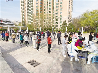 4月7日,海淀區(qū)中關(guān)村街道太陽園,小區(qū)居民在進行全員核酸檢測。新京報記者 浦峰 通訊員 李啟晗 攝