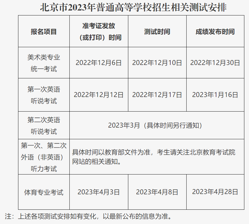 ?。ㄋ模?023年普通高等學(xué)校招生美術(shù)類專業(yè)統(tǒng)一考試、體育專業(yè)考試、英語聽說考試、外語(非英語)聽力考試報(bào)名與高考報(bào)名同期進(jìn)行,符合條件擬報(bào)名參加相關(guān)測試的考生須選報(bào)相關(guān)項(xiàng)目并繳費(fèi)。