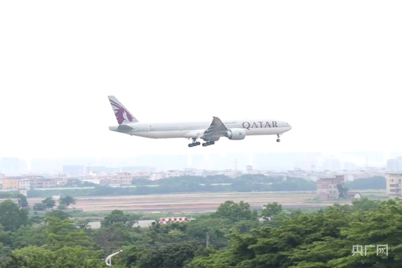 一國(guó)際航班降落廣州白云國(guó)際機(jī)場(chǎng)(央廣網(wǎng)記者 黃璐璐 攝)