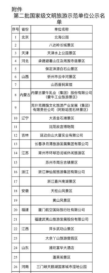 第二批國家級(jí)文明旅游示范單位名單公示 北海公園等66家單位上榜
