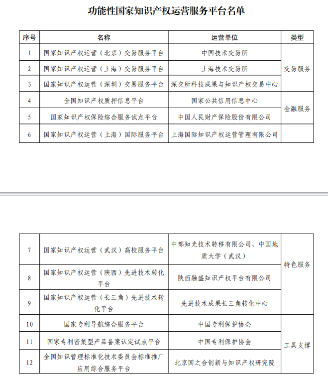 國家知識產(chǎn)權(quán)局認(rèn)定12家功能性國家知識產(chǎn)權(quán)運營服務(wù)平臺