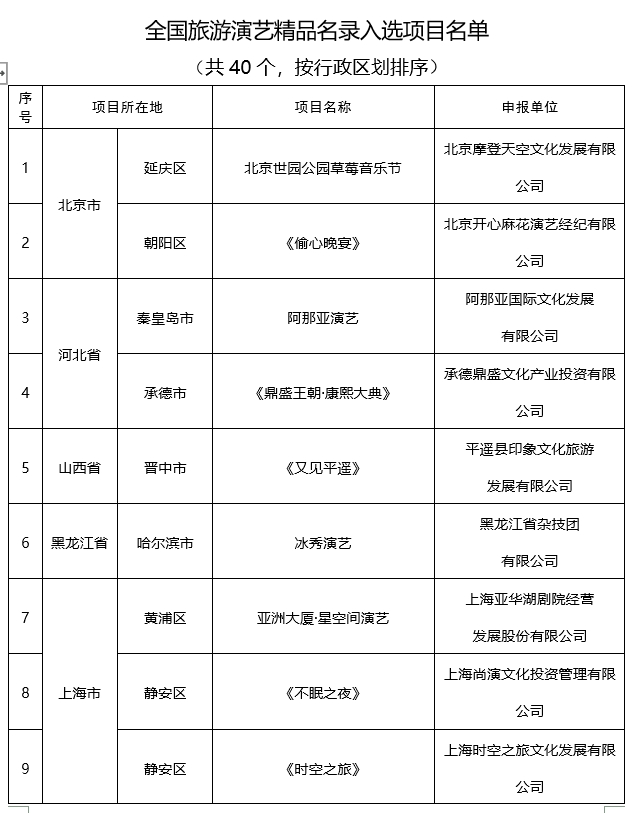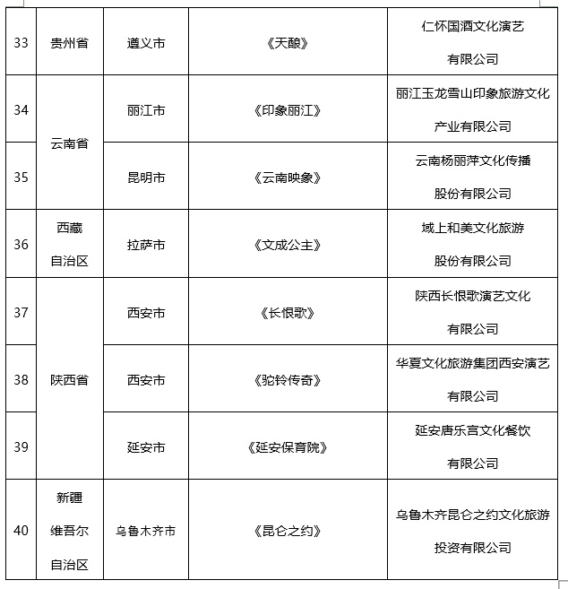 共40個(gè)!全國旅游演藝精品名錄入選項(xiàng)目名單出爐