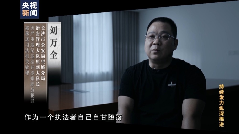 長(zhǎng)沙市公安局望城分局治安管理大隊(duì)原副大隊(duì)長(zhǎng) 劉萬(wàn)全:總共送了兩萬(wàn)三還是兩萬(wàn)五千塊錢。作為一個(gè)執(zhí)法者,自己自甘墮落,為了這些蠅頭小利,貪小利貪小便宜,沒(méi)有守住紀(jì)律的、法律的底線。
