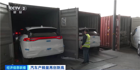 總臺(tái)央視記者 寧坤:在廣東深圳一處物流基地的前置倉(cāng),一批國(guó)產(chǎn)新能源汽車(chē)陸續(xù)裝入集裝箱,隨后將通過(guò)附近的蛇口港片區(qū)裝船出口發(fā)往東南亞國(guó)家。據(jù)了解,這是這家物流公司今年開(kāi)年以后汽車(chē)出口業(yè)務(wù)的第一單。而在剛剛過(guò)去的2023年,由于汽車(chē)出口業(yè)務(wù)量猛增,他們?cè)谶@里的倉(cāng)庫(kù)面積短短一年間就擴(kuò)大了3倍。