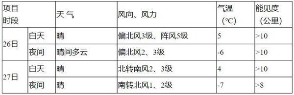 預(yù)計,26日至27日北京天氣以晴為主,其中26日白天有3級偏北風(fēng),陣風(fēng)5級左右,27日風(fēng)力不大;其間白天最高氣溫4~5℃,夜間最低氣溫-7~-6℃。具體預(yù)報見附表: