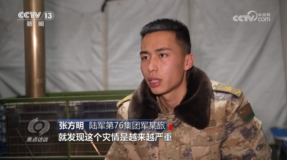 陸軍第76集團(tuán)軍某旅章新禹:“據(jù)我們了解,他家五間房屋全部開(kāi)裂,家人在院子里面搭了一個(gè)帳篷,我們優(yōu)先讓他回去解決自己的事情,然后再返回部隊(duì)。”