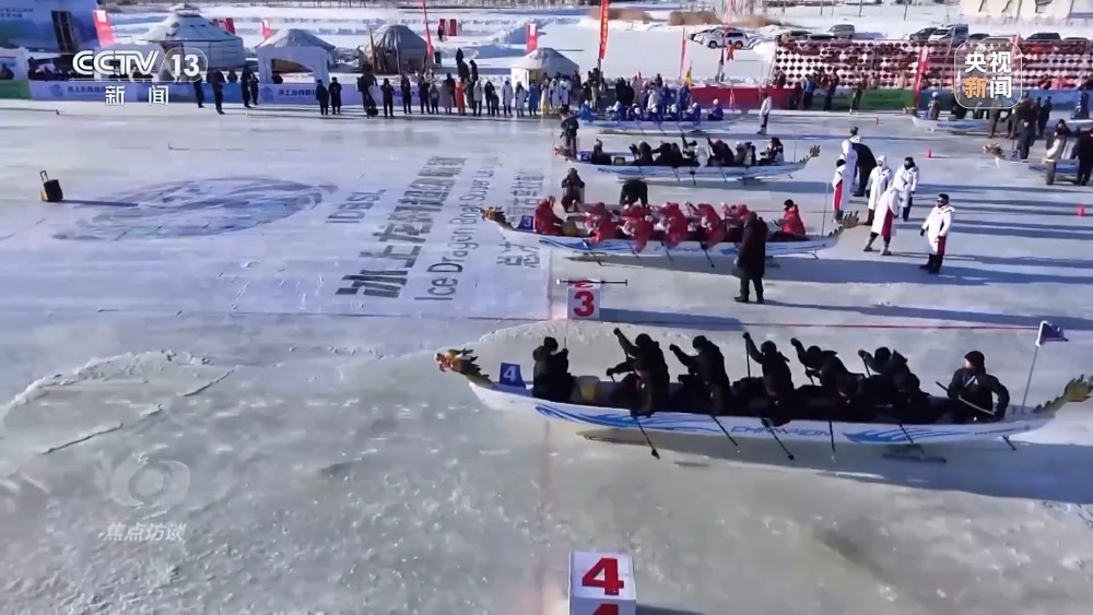 在內(nèi)蒙古,冰上龍舟賽擊鼓競渡,讓龍年一開年就熱鬧得別開生面。