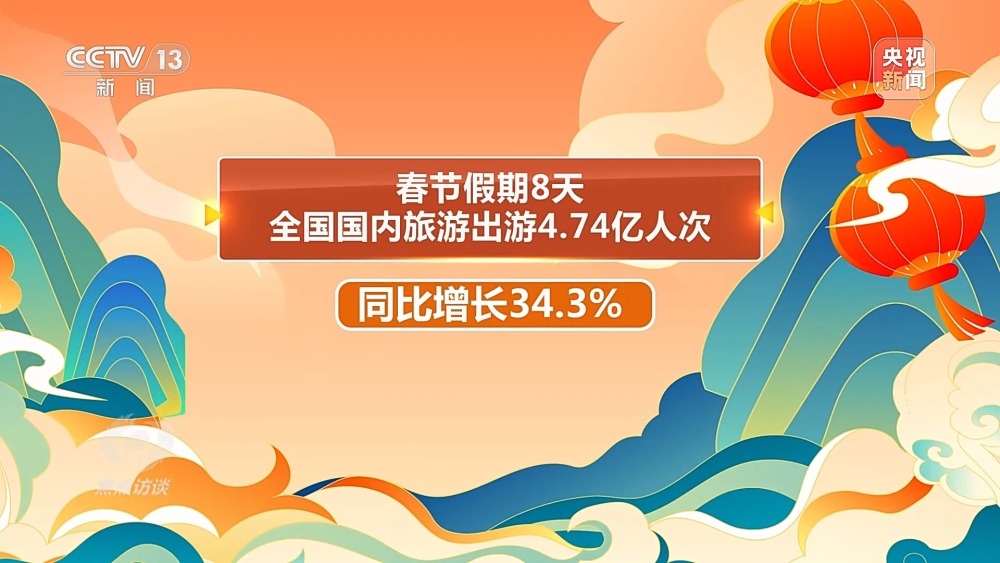 春節(jié)假期,全國上下洋溢著喜氣洋洋、紅紅火火的節(jié)日氣氛。農(nóng)歷正月初一至初八,電影總票房突破80億元,創(chuàng)中國影史春節(jié)檔票房紀(jì)錄;春節(jié)假期8天全國國內(nèi)旅游出游4.74億人次,同比增長34.3%;臘月二十三以來,全國重點(diǎn)商圈的客流總量同比增長超70%;春節(jié)前后,超500萬條打卡傳統(tǒng)文化的內(nèi)容在社交平臺上掀起熱潮。