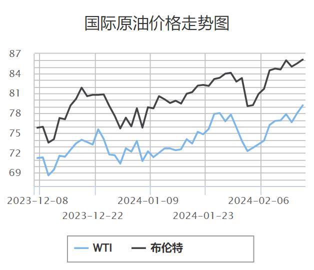 本周期橫跨春節(jié)假期前后,原油市場整體偏強(qiáng)運(yùn)行。截至上周五(當(dāng)?shù)貢r(shí)間2月16日)收盤,WTI 3月原油期貨收漲1.16美元,漲幅1.49%報(bào)79.19美元/桶;布倫特4月原油期貨收漲0.61美元,漲幅0.74%報(bào)83.47美元/桶。