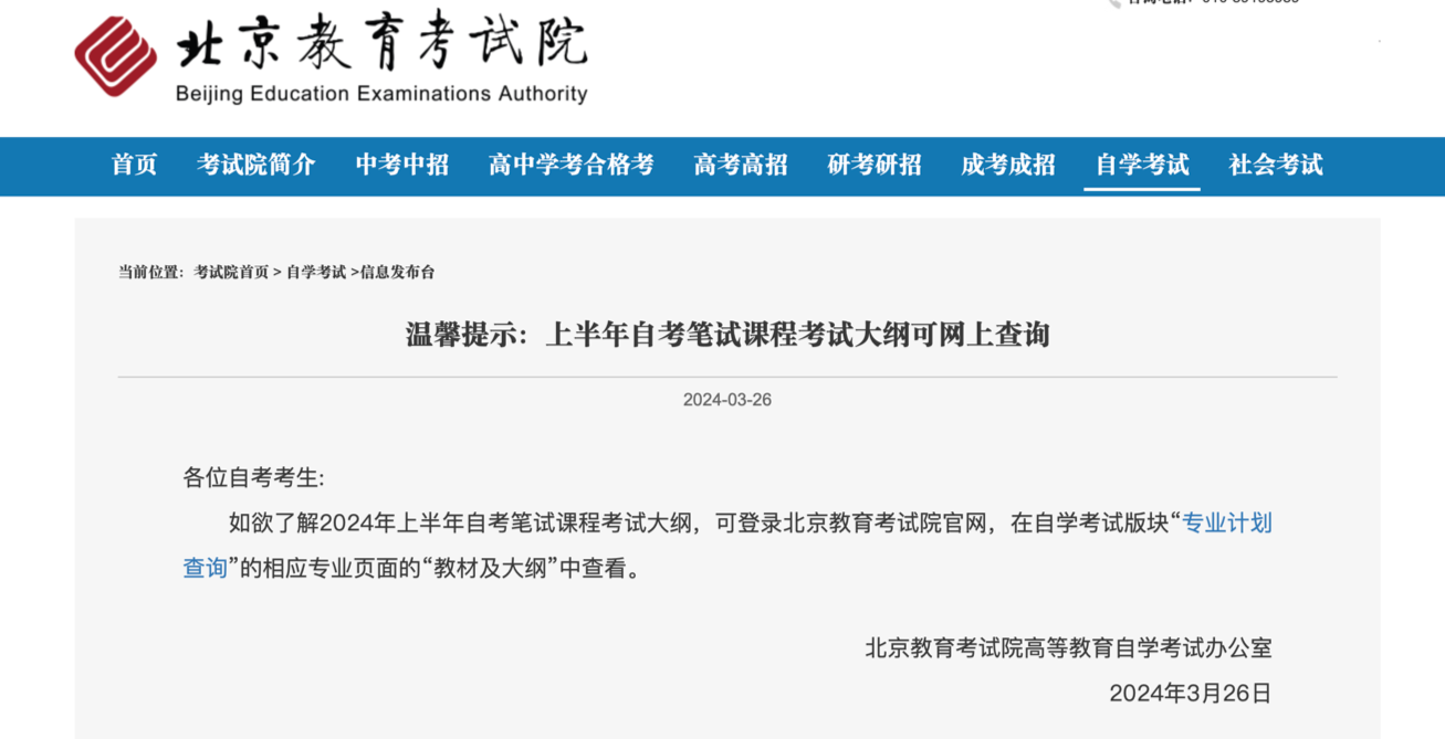 上半年自考筆試課程考試大綱可網(wǎng)上查詢