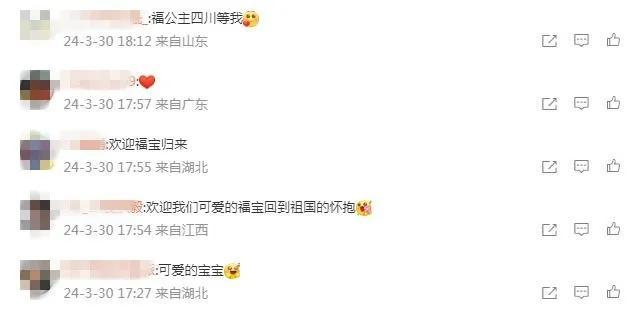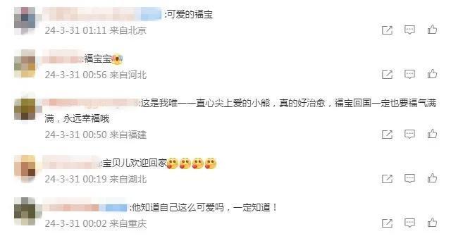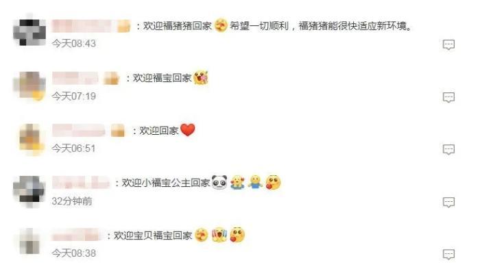 有網(wǎng)友寫道,祝愿“福寶”一切順利,“能很快適應(yīng)新環(huán)境”。還有網(wǎng)友表示,“福寶回國后一定也要福氣滿滿,永遠幸福哦!”