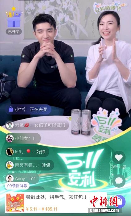 安利(中國(guó))總裁余放(右一)參與直播互動(dòng)