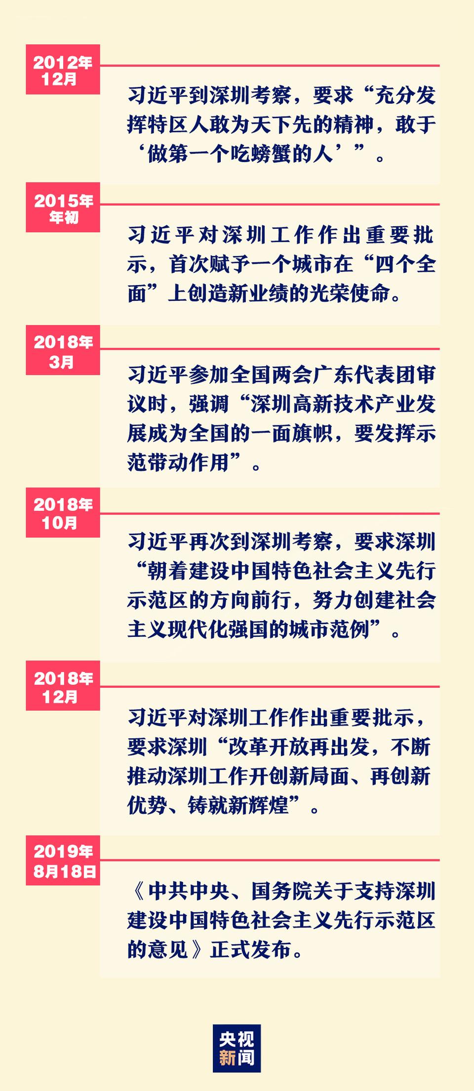 在習(xí)近平總書記的親自謀劃、親自部署、親自推動(dòng)下,2019年8月18日,《中共中央、國務(wù)院關(guān)于支持深圳建設(shè)中國特色社會(huì)主義先行示范區(qū)的意見》正式發(fā)布。這是繼興辦經(jīng)濟(jì)特區(qū)后,深圳迎來的又一重大歷史機(jī)遇。從試驗(yàn)田到先行示范區(qū),深圳承載的不僅是改革開放的先鋒使命,更是中華民族偉大復(fù)興的責(zé)任與擔(dān)當(dāng)。
