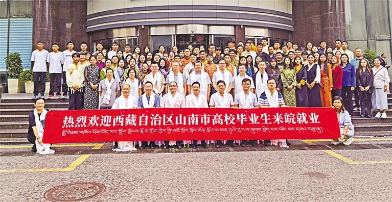 2023年9月,106名西藏籍高校畢業(yè)生組團赴安徽省就業(yè),在全區(qū)實現(xiàn)首個百人以上規(guī)模的“大組團”區(qū)外市場化就業(yè)目標。 圖為西藏籍高校畢業(yè)生抵達安徽后合影留念。