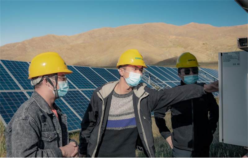 陶瑞勇(中)調(diào)研瓊結(jié)光伏發(fā)電項目運營情況。曲杰供圖