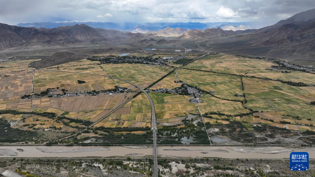 9月10日拍攝的西藏日喀則市白朗縣境內(nèi)的公路(無(wú)人機(jī)照片)。