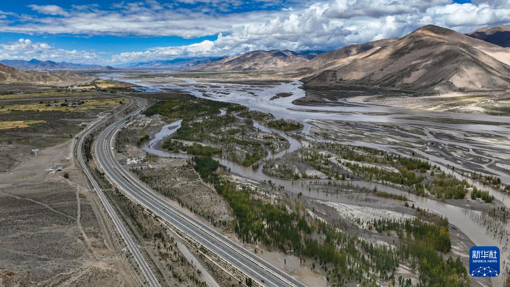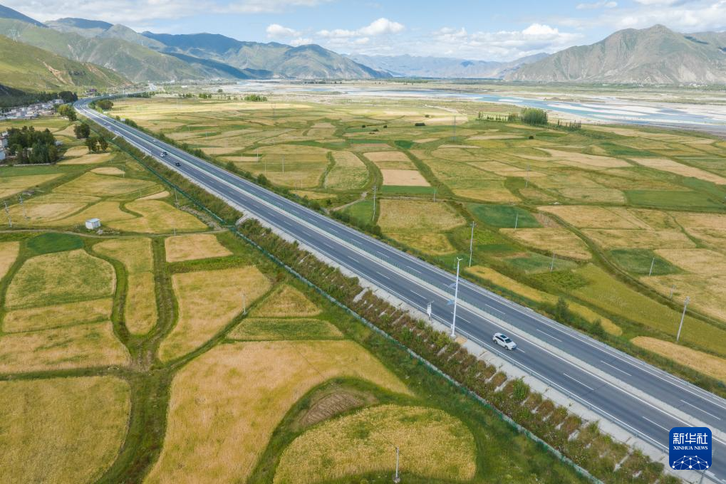 從空中俯瞰西藏拉薩至日喀則高等級(jí)(高速)公路南木林段(9月11日攝,無(wú)人機(jī)照片)。