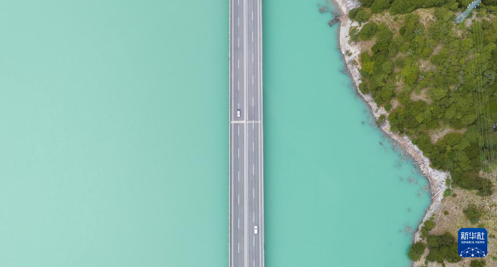9月5日拍攝的橫跨在西藏林芝市境內(nèi)尼洋河上的林芝至拉薩高等級(jí)(高速)公路(無(wú)人機(jī)照片)。