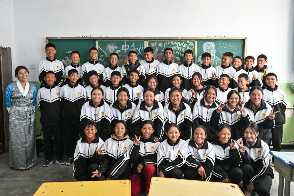 看完一段展示西藏經(jīng)濟社會發(fā)展日新月異的視頻,孩子們眼睛里亮亮的,爭相舉手發(fā)言:“現(xiàn)在交通越來越便捷,村里的游客多了,我們?nèi)ブ苓吺锌h也更方便?!薄案髅褡逋麍F結(jié)一心!西藏的明天會更好!”……