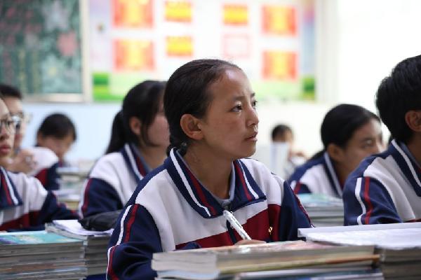 果洛西寧民族中學學生尼東拉毛在上課(圖片來源:新華社)