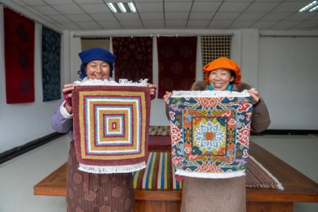 近年來,西藏山南市瓊結縣將傳統(tǒng)文化與鄉(xiāng)村振興相結合,通過援藏力量招商引資,成立公司生產(chǎn)純手工藏毯,同時還聘請藏毯手工藝人,為當?shù)厝罕娊淌诰幙椉妓?,在傳承傳統(tǒng)技藝的同時,拓寬農(nóng)牧民增收渠道。 新華社記者 旦增尼瑪曲珠 攝