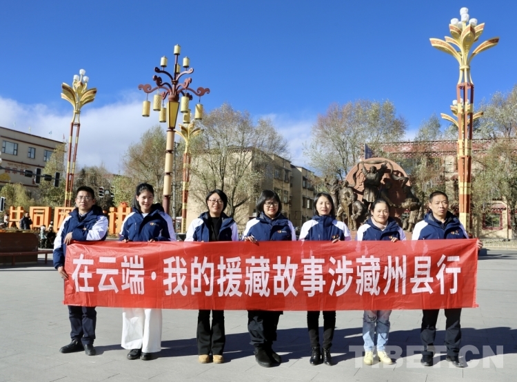 圖為宣講團(tuán)援藏干部代表在甘孜縣羅布林廣場合影留念 攝影:龍真多吉