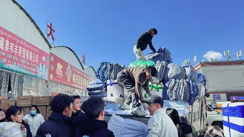 立馬行動起來!他們自籌資金,陳軍亮還聯(lián)系到一些戰(zhàn)友,共同集資采購救災(zāi)物品。作為公益機構(gòu)負責(zé)人,王順利和她的小伙伴,第一時間買了從西安轉(zhuǎn)機飛往拉薩的機票,并在路上聯(lián)絡(luò)西藏的伙伴,采購物資足足裝了3卡車,共30多噸,價值超過40萬元,緊急運輸發(fā)往定日。