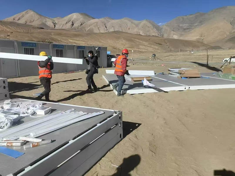 據(jù)介紹,災(zāi)區(qū)海拔高達4000多米,氣溫只有-13℃,所以參與搭建的工人,必須是之前有過高原作業(yè)經(jīng)驗的?!凹b箱房是緊缺物資,我們早點到,就能讓更多人得到幫助?!碑?dāng)?shù)刎撠?zé)人說。