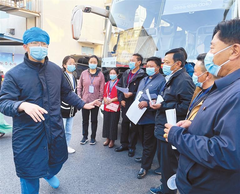 學(xué)員們?cè)诒本┖教熘行尼t(yī)院準(zhǔn)備體檢。記者 白娟 次旺 邊珍 攝