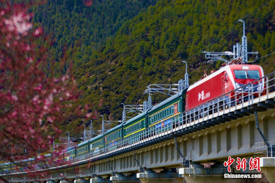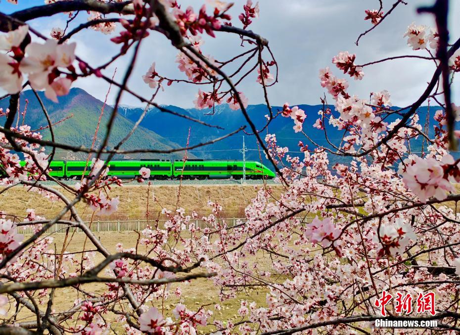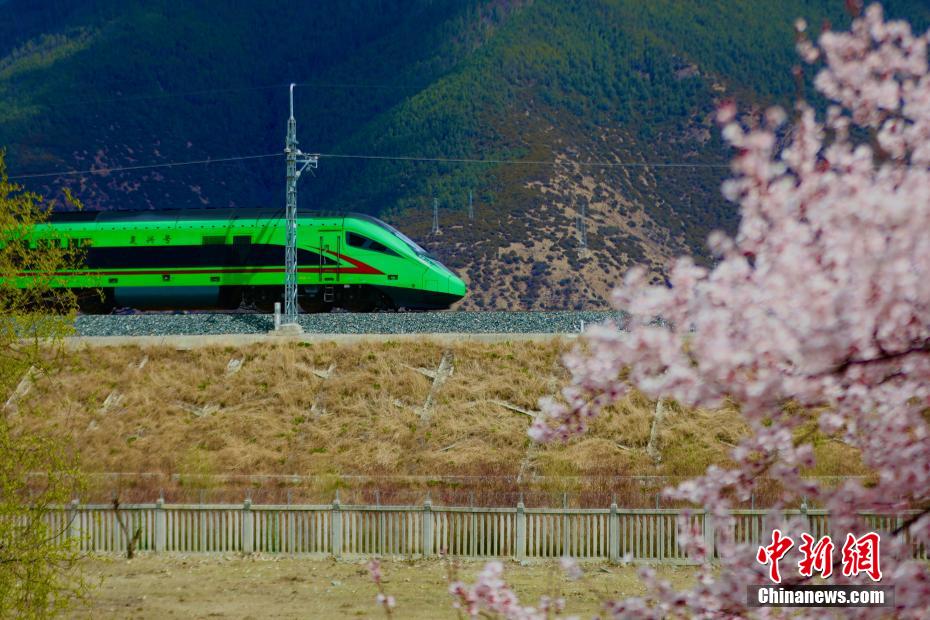 被譽為新“天路”的拉林鐵路,是中國首條高原電氣化鐵路,于2021年6月25日開通運營,結(jié)束了西藏東南地區(qū)不通鐵路的歷史。圖為拉林鐵路沿線桃花盛開,與飛馳而過的動車構(gòu)成別樣風(fēng)景圖。