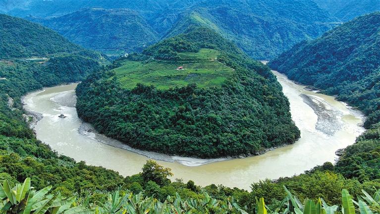 其實(shí),果果塘大拐彎里還藏著一枚新年大型“彩蛋”——這里又稱作雅魯藏布江蛇形大拐彎。由雪域高原的百川匯流而成的雅魯藏布江,在果果拉山附近繞了一個大彎。站在德興鄉(xiāng)的觀景臺上眺望,人們便會發(fā)現(xiàn)這里宛如一條碧青的長蛇盤踞在蒼翠茂盛的雨林之間,蔚為壯觀。