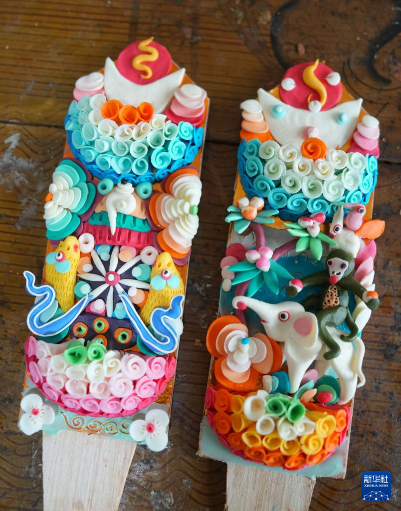 在拉薩市老城區(qū),小學(xué)徒在展示剛剛做好的一對酥油花(2月25日攝)。新華社記者 晉美多吉 攝