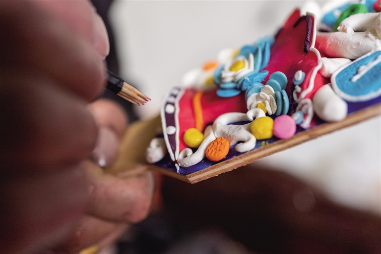 “今年是木蛇年,我們會依據當年的屬相制作一些定制款。每個人的手感不同,做出來的酥油花都是獨一無二的?!崩习甯裆=榻B道,“制作酥油花的過程很重要,尤其是選酥油。如果用平時吃的酥油很容易化掉,我們需要挑選白色的酥油。每個酥油花的寓意不同,我們做的種類也會更加豐富?!?/p>