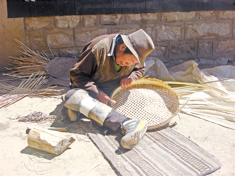 手藝人在制作柳條編織產(chǎn)品。圖/文 記者 黃志武 格桑倫珠