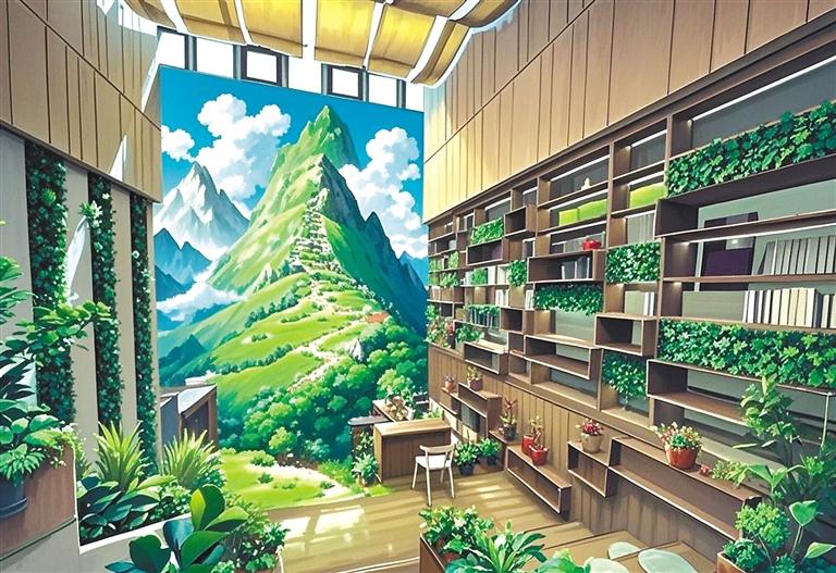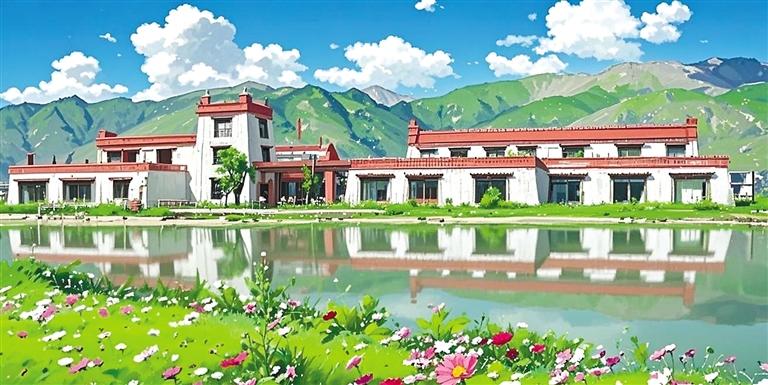 “我就是想以動(dòng)畫風(fēng)格給大家展示不一樣的堆龍?!钡┰隼氛f。只見她又將照片導(dǎo)入AI圖片生成軟件內(nèi),AI自動(dòng)識(shí)別圖像元素——經(jīng)幡的布料特性、水流的物理參數(shù)、建筑材質(zhì)的反光數(shù)據(jù)。輕點(diǎn)“生成”按鈕,1分23秒后,一張動(dòng)畫風(fēng)格的Shadada CoffeeX新型公共文化空間的圖片便呈現(xiàn)在眼前。重點(diǎn)不是技術(shù),是審美把關(guān),旦增拉姆指著屏幕上的失敗案例:“AI把青稞田處理成糖果色卡通,把圖書館渲染成賽博朋克風(fēng)格。我每天要調(diào)整無數(shù)次參數(shù),就像教AI理解什么是藏地美學(xué)?!彼米瞵F(xiàn)代化的數(shù)字工具,“描繪”著堆龍德慶區(qū)新的光影詩篇。
