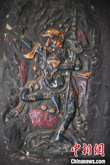 4月27日,記者探訪了當(dāng)雄縣貢堂鄉(xiāng)沖嘎?tīng)柎蹇雕R寺的瑪尼拉康?,斈崂凳窃撍鲁扌卸粗獾脑缙谧诮袒顒?dòng)場(chǎng)所,也是寺院里最古老的建筑。這里保存著令人驚嘆的石刻造像墻,這些石刻距今已有三百年歷史?,斈崂低庥^普通,但其室內(nèi)六面墻上整齊地貼滿了浮雕石刻板,共計(jì)1213塊(僅一塊缺失)。石刻內(nèi)容豐富,涵蓋了藏傳佛教各宗各派的本尊、祖師、佛母菩薩等,造型多姿多樣,線條清晰流暢。這處石刻造像墻對(duì)于研究西藏傳統(tǒng)雕刻、藏傳佛教以及歷史具有重大意義。中新社記者 貢嘎來(lái)松 攝
