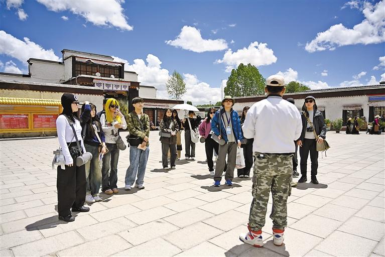 導(dǎo)游在為游客講解扎什倫布寺相關(guān)情況。