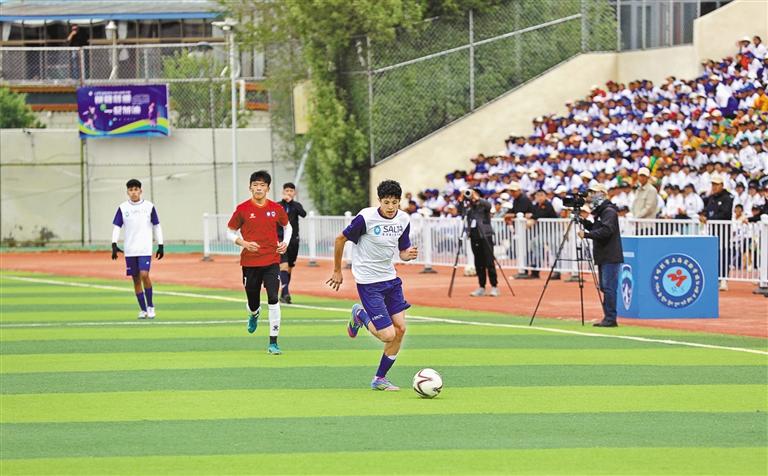 以球為媒,“球”同存“誼”。5月20日下午,中國日喀則市珠峰雪鷹隊與阿根廷薩爾塔普納隊在日喀則市上海實驗學(xué)校體育場上演了一場跨越山海的青少年足球友誼賽。賽場上,雙方球員迅速進入狀態(tài),團結(jié)配合、積極拼搶,用細(xì)膩的腳法,或急停、或變向、或假動作,輕松晃過對手,射門得分,給觀眾呈現(xiàn)了一場精彩的足球比賽。