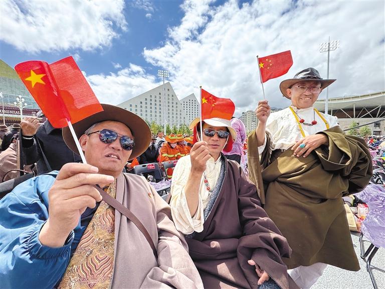 演出中,不同民族的文藝志愿者齊聚一堂。漢族、藏族、蒙古族、彝族等各民族藝術(shù)家攜手合作,用藝術(shù)搭建起溝通的橋梁。他們用歌聲、舞蹈、相聲、朗誦等多種藝術(shù)形式,深情歌頌新時代黨的治藏方略,生動展現(xiàn)西藏自治區(qū)成立60年來的滄桑巨變,傳遞民族團(tuán)結(jié)的深厚情誼,讓現(xiàn)場觀眾沉浸在藝術(shù)的氛圍中。