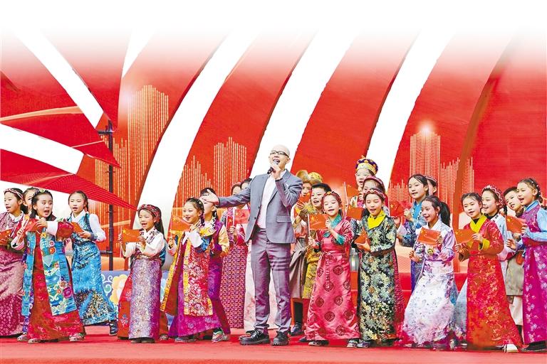 歌手平安與西藏珠峰少年合唱團(tuán)帶來歌曲《我愛你中國》。(其余圖片均由記者 唐斌 白瑪澤旺 王敏 丹增群培 旦增蘭澤 攝)