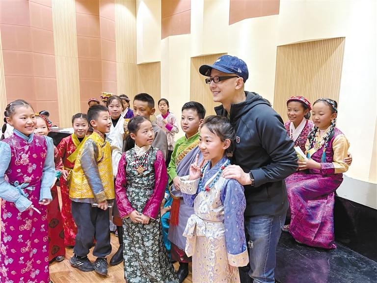 文藝志愿者與西藏珠峰少年合唱團(tuán)開展暖心結(jié)對幫扶。 (圖片由自治區(qū)黨委宣傳部提供)