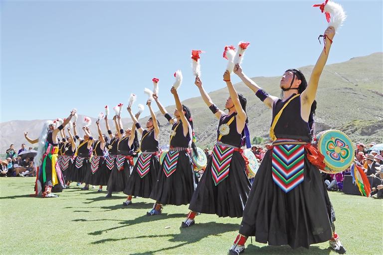 每年6月的第二個星期六是文化和自然遺產日。這一周,瓊結縣藝術團接到很多演出邀請。久負盛名的久河卓舞是瓊結縣藝術團的保留節(jié)目。