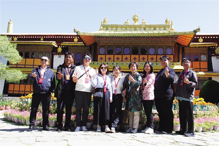 港澳地區(qū)旅行商在羅布林卡內拍照留念。文/圖 記者 張琳