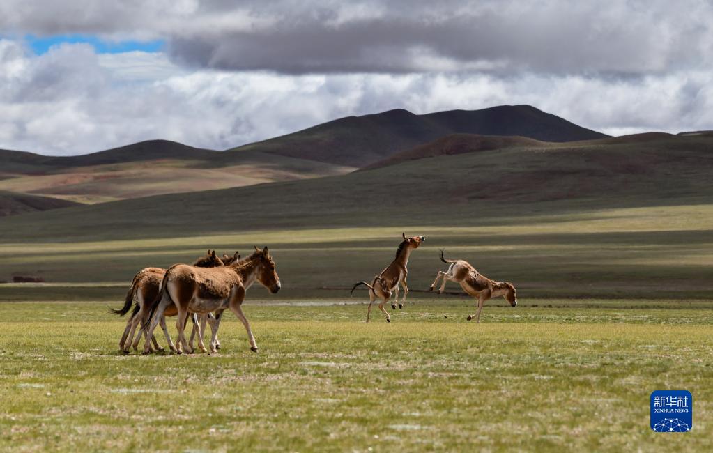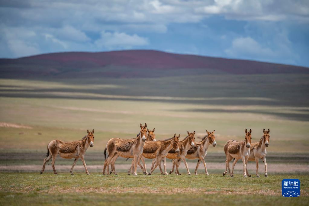 在雙湖縣境內拍攝的藏野驢(7月16日攝)。新華社記者 晉美多吉 攝