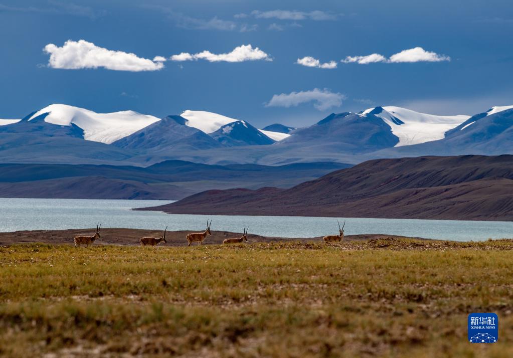 在雙湖縣境內拍攝的藏羚羊(7月17日攝)。新華社記者 晉美多吉 攝