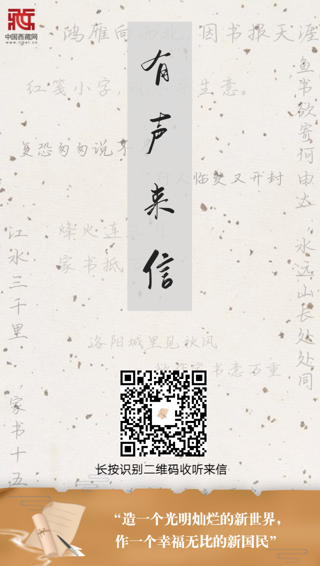【編者按】穿越歲月長河,翻開一封封紅色家書,感受筆端下的家國情懷和人間煙火。一紙書信明志向,一紙書信道親情,家書中浸透著硝煙與血汗,澎湃著奮斗與信仰,在中國共產(chǎn)黨成立100周年之際,中國西藏網(wǎng)推出融媒體產(chǎn)品[有聲來信],從紙短情長中重溫波瀾壯闊的歷史,感悟革命先輩的心路情懷。本期內(nèi)容為:造一個光明燦爛的新世界,作一個幸福無比的新國民